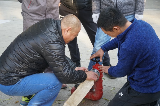 在灭火器操作审核中,参训职员凭证“一提二拔三压四喷”的标准流程杀绝火盆中的火;消火栓操作审核中,参训职员两人一组,一人认真接消火栓,开启阀门;另一人认真铺水带、毗连水枪,出水至目的。在操作历程中,参训职员进一步熟悉了现场处置惩罚火情的准确流程,更好的掌握了灭火手艺。
