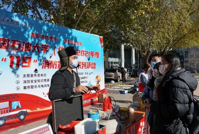 活动时代 ,守卫处南广场设置了咨询展台 ,解答师生在一样平常事情中的相关问题 ,同步连系119消防宣传主题咨询日开展了宣传活动 ,现场安排了案例警示教育展板 ,设置了VR体验消防器材展示解说、绳结教学心肺苏醒、模拟灭火器体验与烟雾逃生等六体验活动 ,通过闯关集卡赢奖品形式吸引了百余名师生参。