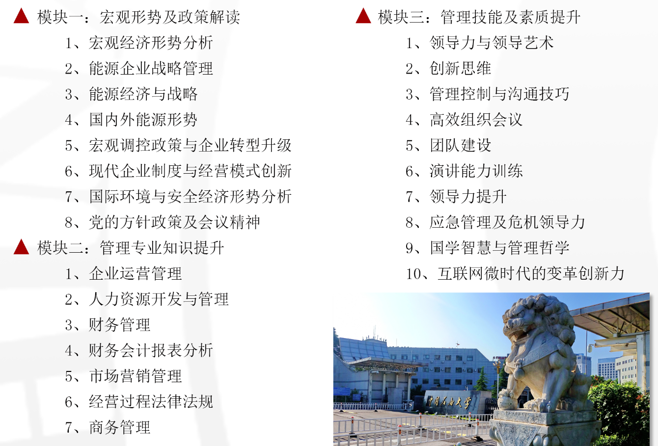 参培学员掌握最新治理知识与手艺 ,立异事情方法 ,实现高效治理 。
