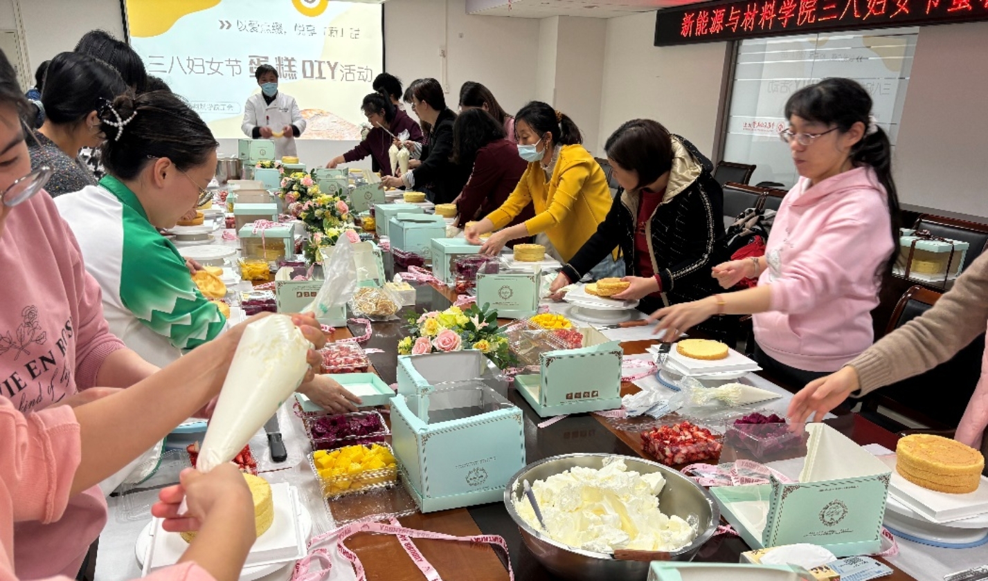 为庆祝三八妇女节的到来,富厚女教职工精神文化生涯,展现巾帼风范,新能源与质料学院工会于3月7日面向女教职工举行了“以爱遮掩,悦享‘新’甜”——三八妇女节蛋糕DIY活动。