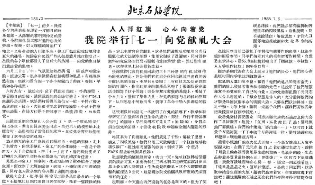 1958Äê¡°ÆßÒ»¡±Ç°Ï¦£¬±±¾©Ê¯ÓÍѧԺ¸÷¸ö½ÇÂä¶¼³äÂú׎ÚÈյĻ¶Ï²Æø·Õ¡£°×Ì죬ȫԺʦÉúÔ±¹¤ÍüÎÒµÄÊÂÇ飬ҹÍí£¬¸÷ÈËèηçãåÓêµØ¸ÏÖÆË§ÆìºÍÖÖÖÖÄ£×Ó¡£6ÔÂ30ÈÕ£¬Ê¦ÉúÃǸ߾Ù˧Æì£¬ÊÖ̧ģ×Ó£¬ÒÂ׎ÚÈÕµÄÑÞ·þ£¬ÔظèÔØÎèµØÏò»á³¡Ðнø£¬ÓÃϸÄåµÄÄ£×Ó¡¢Ï¸ÄåµÄÑùÆ·¡¢×îпÆÑÐЧ¹ûµÈÏòµ³Ï×Àñ¡£