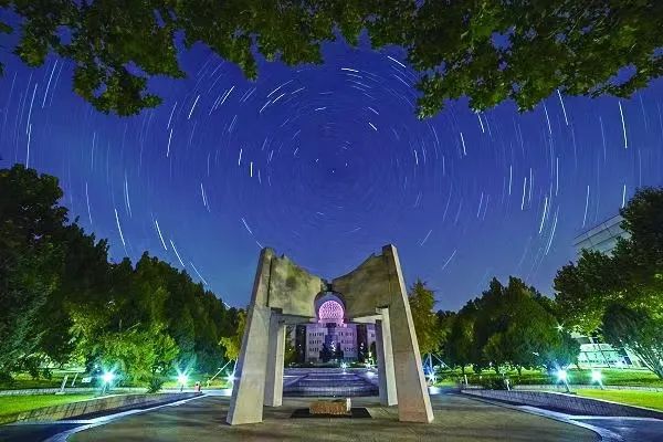 图书馆上方18米直径的钢管球象征着地球,立柱与钢管球遥遥呼应,寓意为生长石油石化学科,掌握翻开智慧之门的钥匙,开发地球能源,效劳祖国建设。