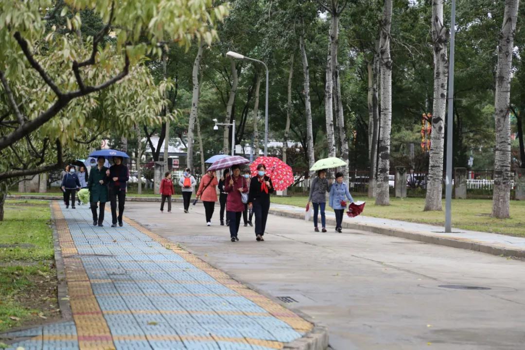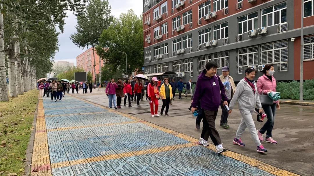 霞披斜阳情无限,霜染秋枫叶正红。微风细雨送秋爽,瓜果梨桃正香甜。10月14日上午,中凯时离退休事情处在昌平东校园举行了以“庆建党百年,迎重阳佳节”为主题的健步走活动,一百多名离退休教职工在蒙蒙细雨中加入了本次活动。