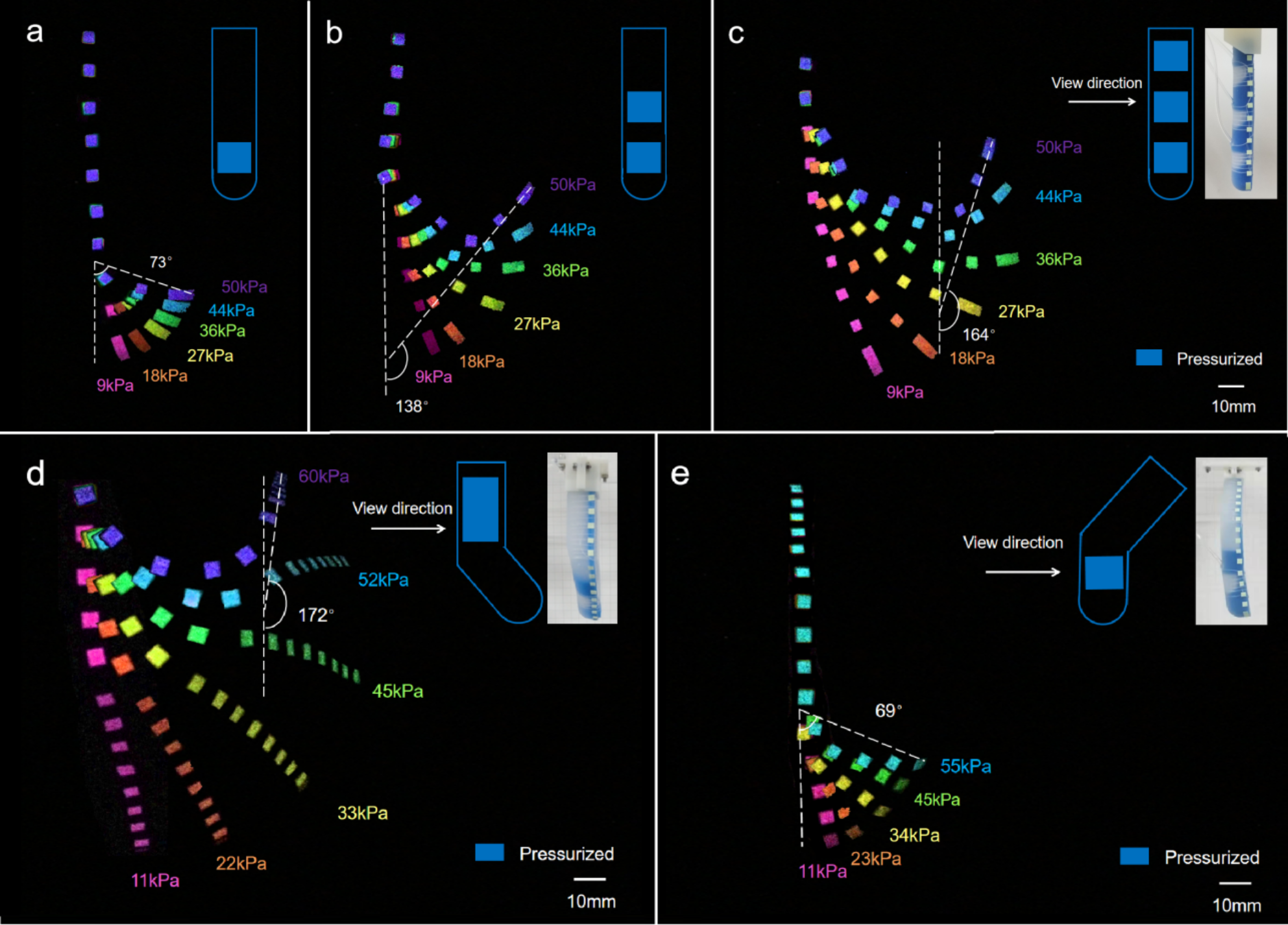 ÊÖÖ¸ºÍÄ´Ö¸£¨°üÀ¨´óÓã¼Ê£©ÔÚ²î±ðÆøÑ¹ÏµÄÍäÇú¹ì¼£¡£(a-c)·ÂÍâÐÐÖ¸²î±ðÊàŦµÄÍäÇú¹ì¼££»(d)Ä´Ö¸µÄÍäÇú¹ì¼££»(e)´óÓã¼ÊµÄÍäÇú¹ì¼£¡£