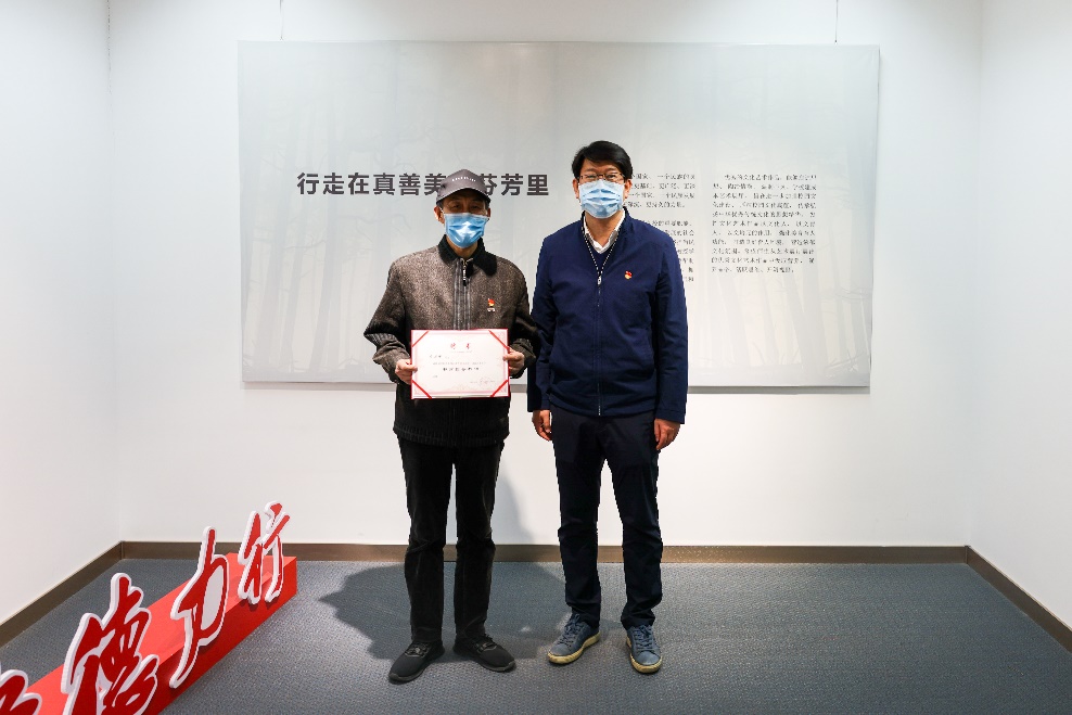 学校党委副书记、副校长韩尚峰,中国书法家协会会员、昌平区书法家协会副主席蔡利国,学校党委宣传部、团委、体育与人文艺术学院等部分及学院认真人等为获奖代表颁奖,并一同旅行了“红色昌平 百年印记”篆刻艺术作品展。