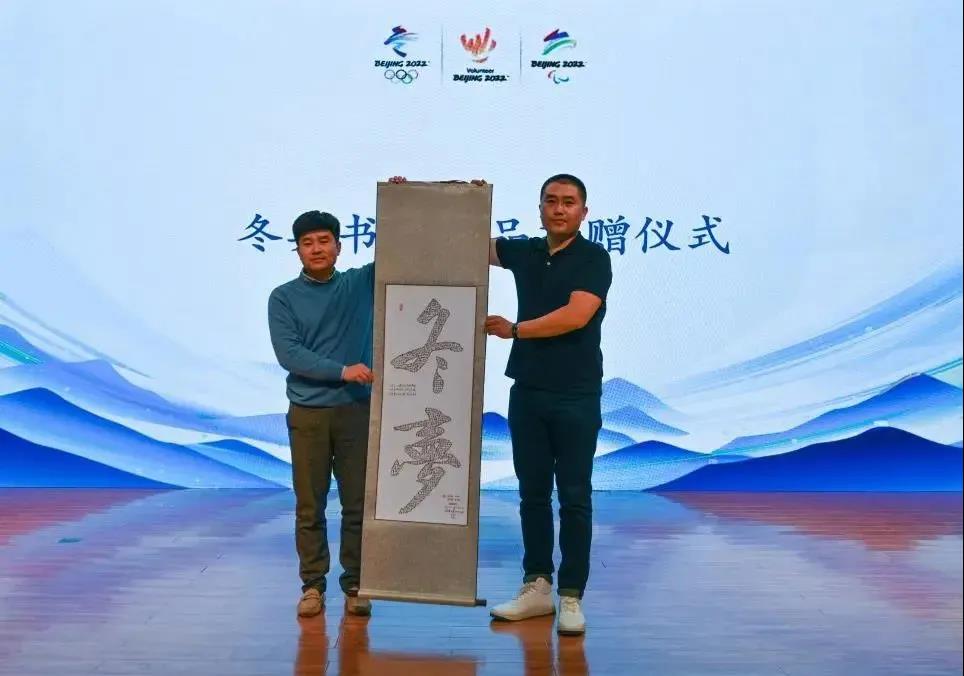 在延庆冬奥村(冬残奥村)自愿者之家,一幅《冬梦》书法设计作品质外亮眼。