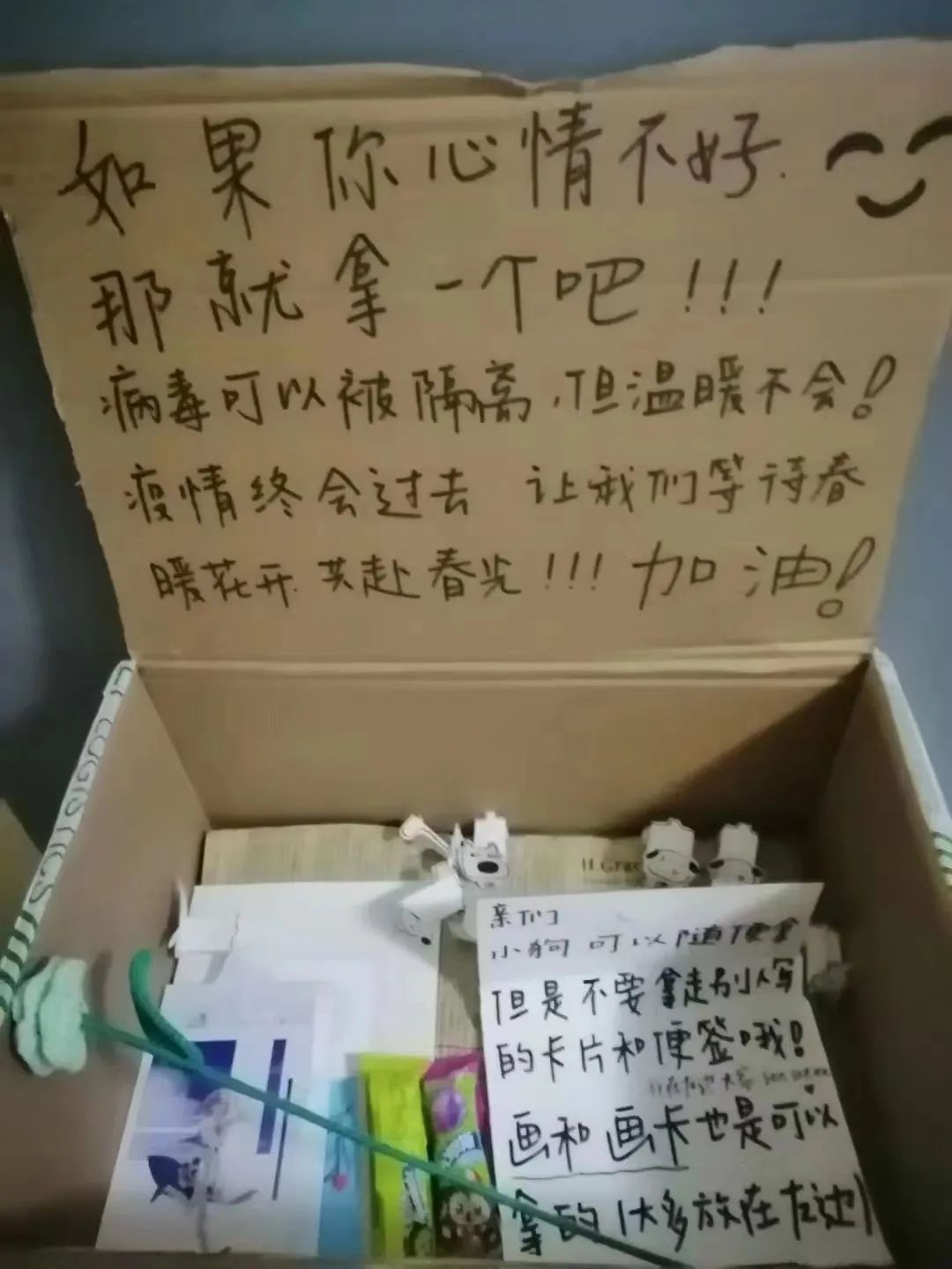 ÕâÁ½ÌìÈó½Ü¹«Ô¢2ºÅÂ¥¶þÂ¥µÄÂ¥¿Ú£¬Í¬ÑâÃDZ»Ò»¸ö·½ÐεĺÐ×ÓÎüÒý¡£¡°¸÷ÈËËæÒâÄ㬲»Òª¿ÍÌ×£¬¼ÓÓÍ£¡¡±¡°Ï£Íû¿ÉÒÔ¸ø¸÷ÈË´øÀ´Ð©Ðí¿ìÀÖ£¡¡±ºÐ×ÓÅÔ±ßÓòʱÊд×ÅÕâÑùµÄÌáÐÑÓºÐ×ÓÀï°ÚÂúÁËÆ¯ÁÁµÄÊÖ»æÃ÷ÐÅÆ¬¡£