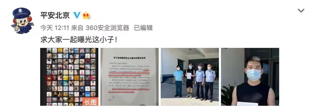 前几天 ,北京市公安局@平安北京发了一条微博“求各人一起曝光这小子!” ,获得了新华社、人民日报、央视新闻等媒体的转发 。
