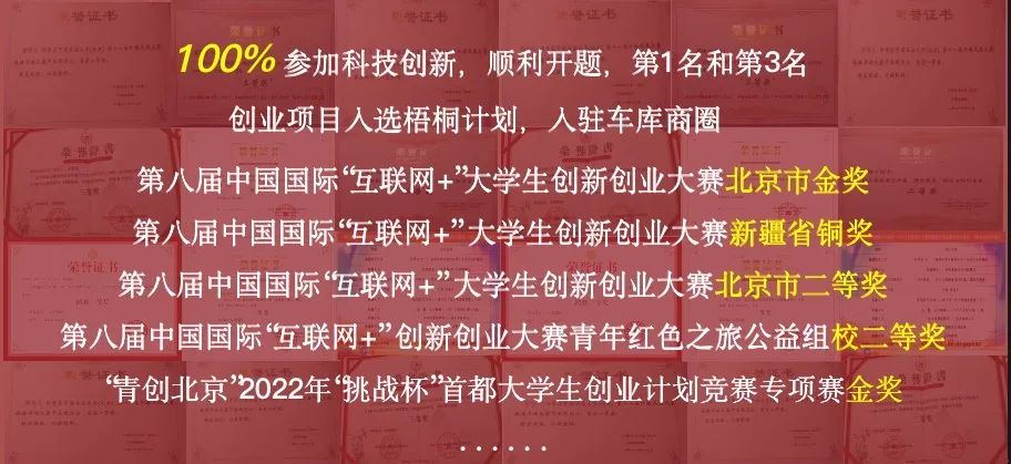 ÍÅÖ§²¿³ÉÔ±100%¼ÓÈë¿Æ¼¼Á¢ÒìÏîÄ¿£¬ÓÚ´óѧÉúÁ¢ÒìѵÁ·ÏîÄ¿ÖлñµÃ¿ªÌâµÚ2ÃûºÍµÚ6Ãû £»Í¬Ê±Æð¾¢¼ÓÈëÖÖÖÖ¾ºÈü£¬ÈÙ»ñ µÚ°Ë½ì¡°»¥ÁªÍø+¡±´óѧÉúÁ¢Òì´´Òµ´óÈü±±¾©Êн𽱡¢Ð½®Î¬Îá¶û×ÔÖÎÇøÍ­½±¡¢±±¾©ÊÐÒ»µÈ½±¡¢¶þµÈ½±µÈ¶à¼¶½±Ï¡°Çà´´±±¾©¡±ÎÄ»¯´´ÒâÈüµÀ½ð½±µÈ¶þÊ®ÓàÏîÉùÓþ ¡£