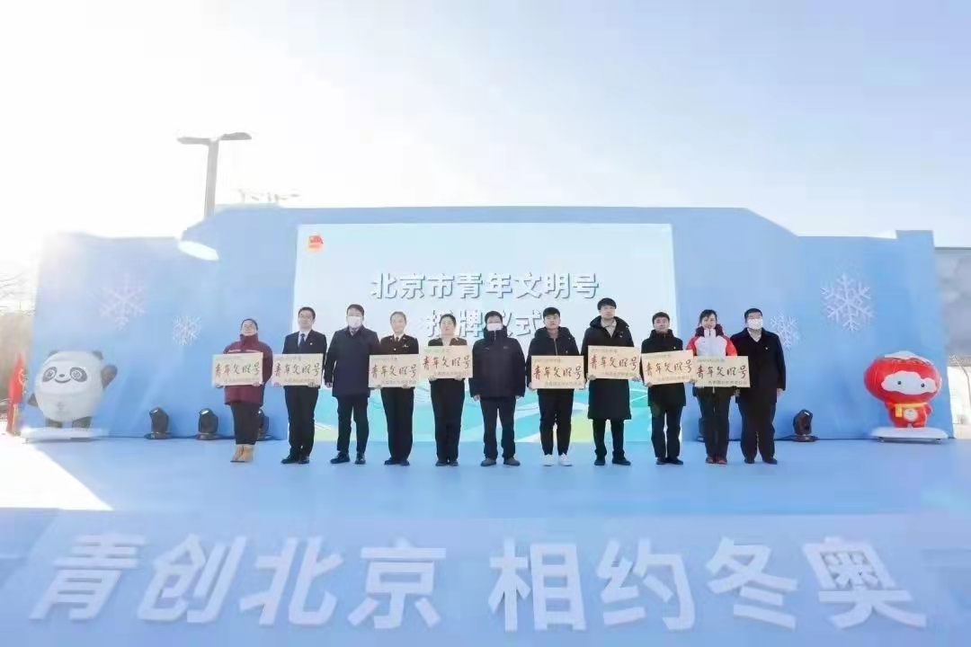 惠乐怡等与会向导为2020-2021年度北京市“青年文明号”代表举行了整体授牌,凯时(北京)团委书记周学智接受授牌。